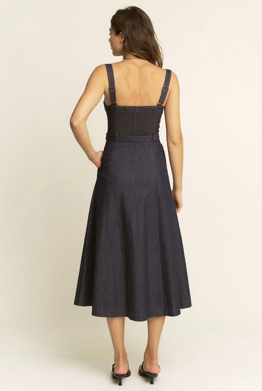 2162 Denim Corset Midi Dress