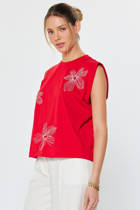 2158 Embroidered Muscle Tee Top