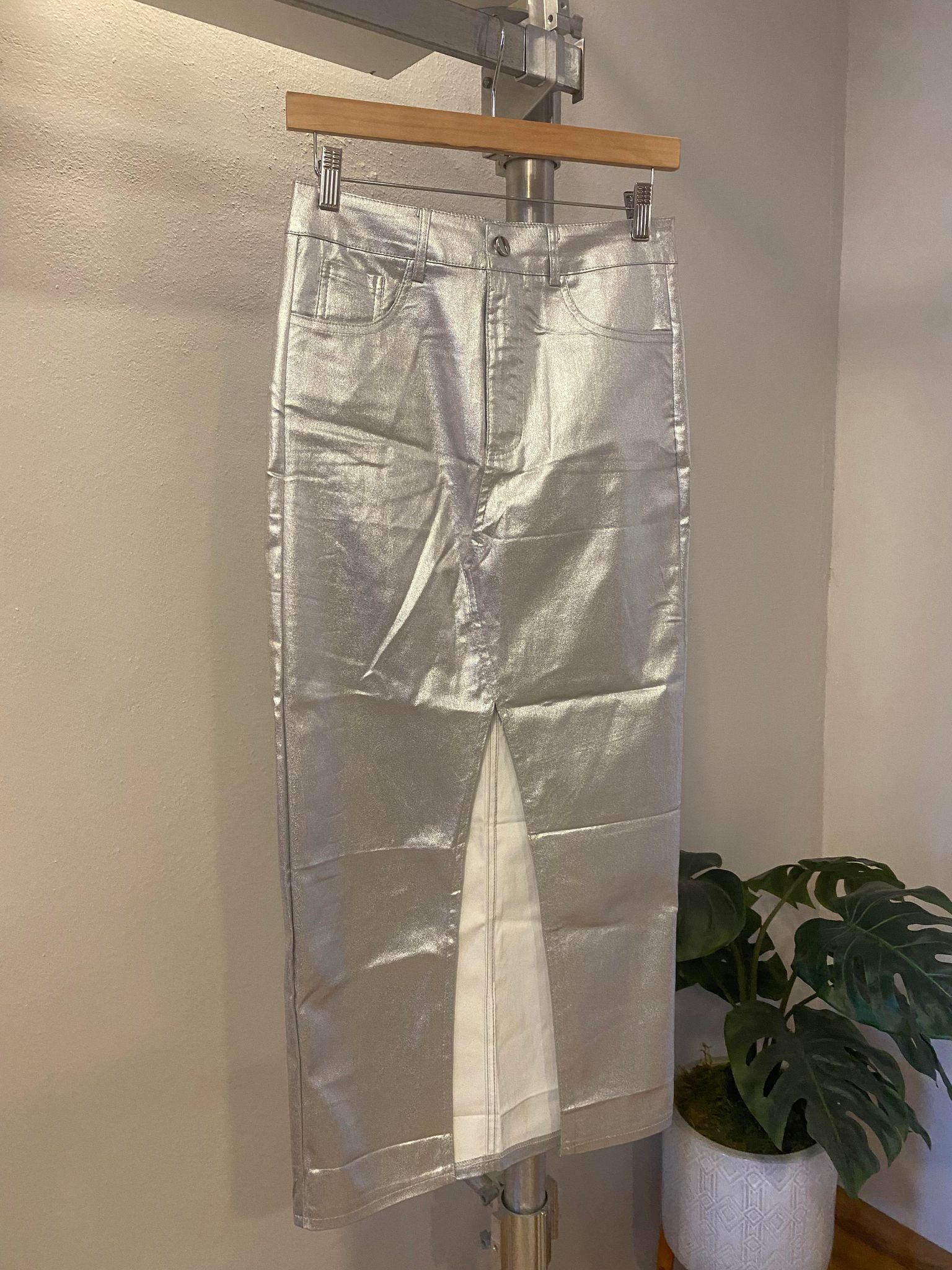 1027 Silver Italian Onesize Metallic Pencil Skirt