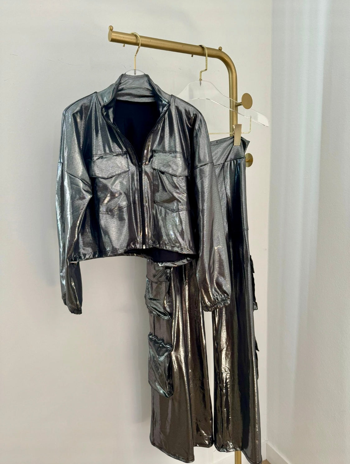1227 WhiteBerry Onesize Animal Print Metallic Pant Set