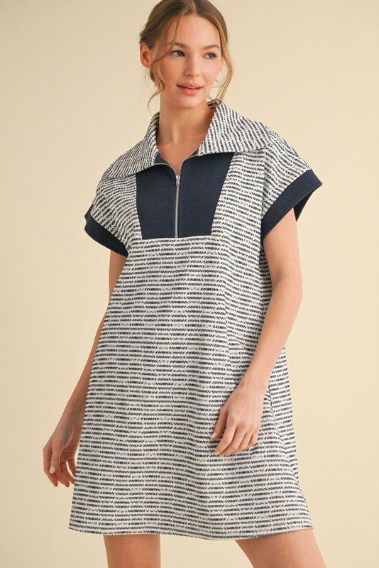 1363 Zipper Big Collar Navy Dress